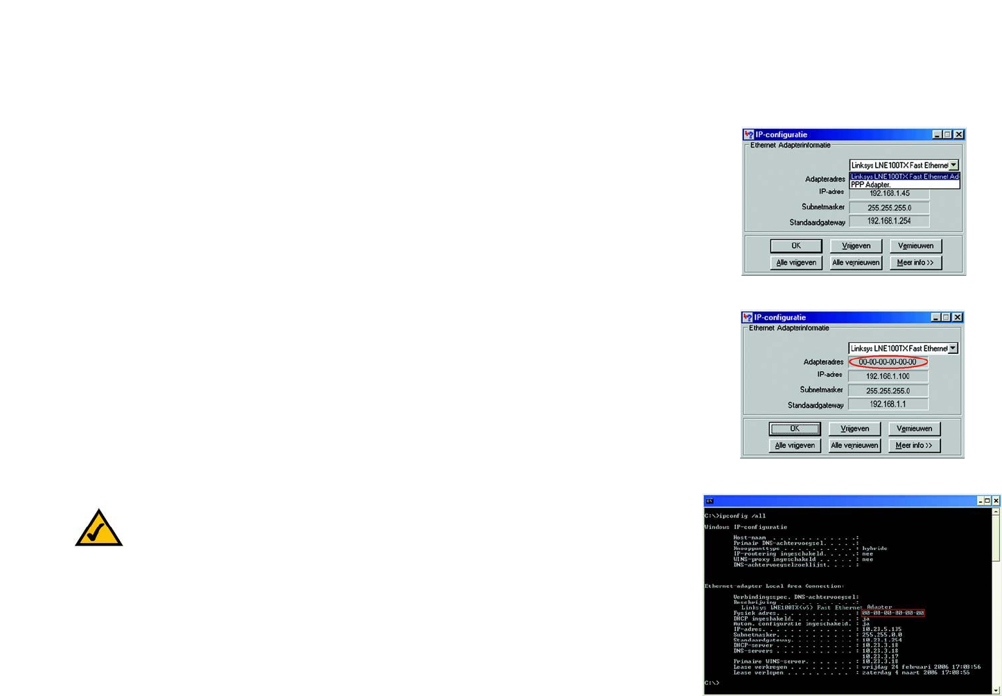 Bijlage E: Het achterhalen van het MAC- en IP-adres voor uw Ethernet-adapter