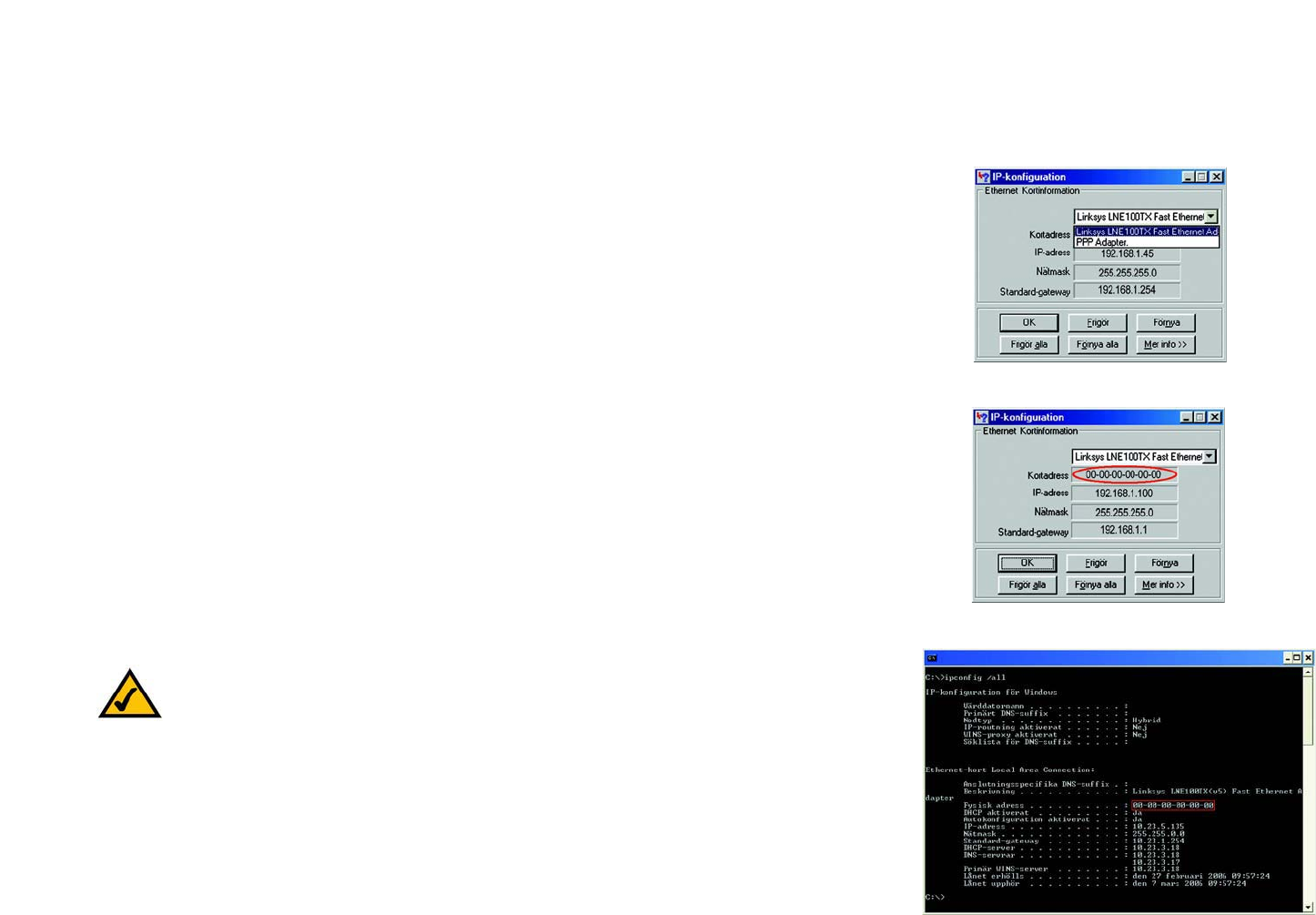 och/eller DMZ-funktioner. Följ anvisningarna i den här bilagan när du vill hitta adapterns MAC- eller IP-adress