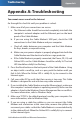 Troubleshooting Appendix A Appendix A: Troubleshooting You cannot access e-mail or the Internet. Go through this checklist until your problem is solved: 1. Make sure all of your connections are secure. a. The Ethernet cable should be inserted completely into both the computer’s network adapter and the Ethernet port on the back panel of the Cable Modem. b. If you are using the Cable Modem’s USB port, check the USB connections to the Cable Modem and your computer. c.