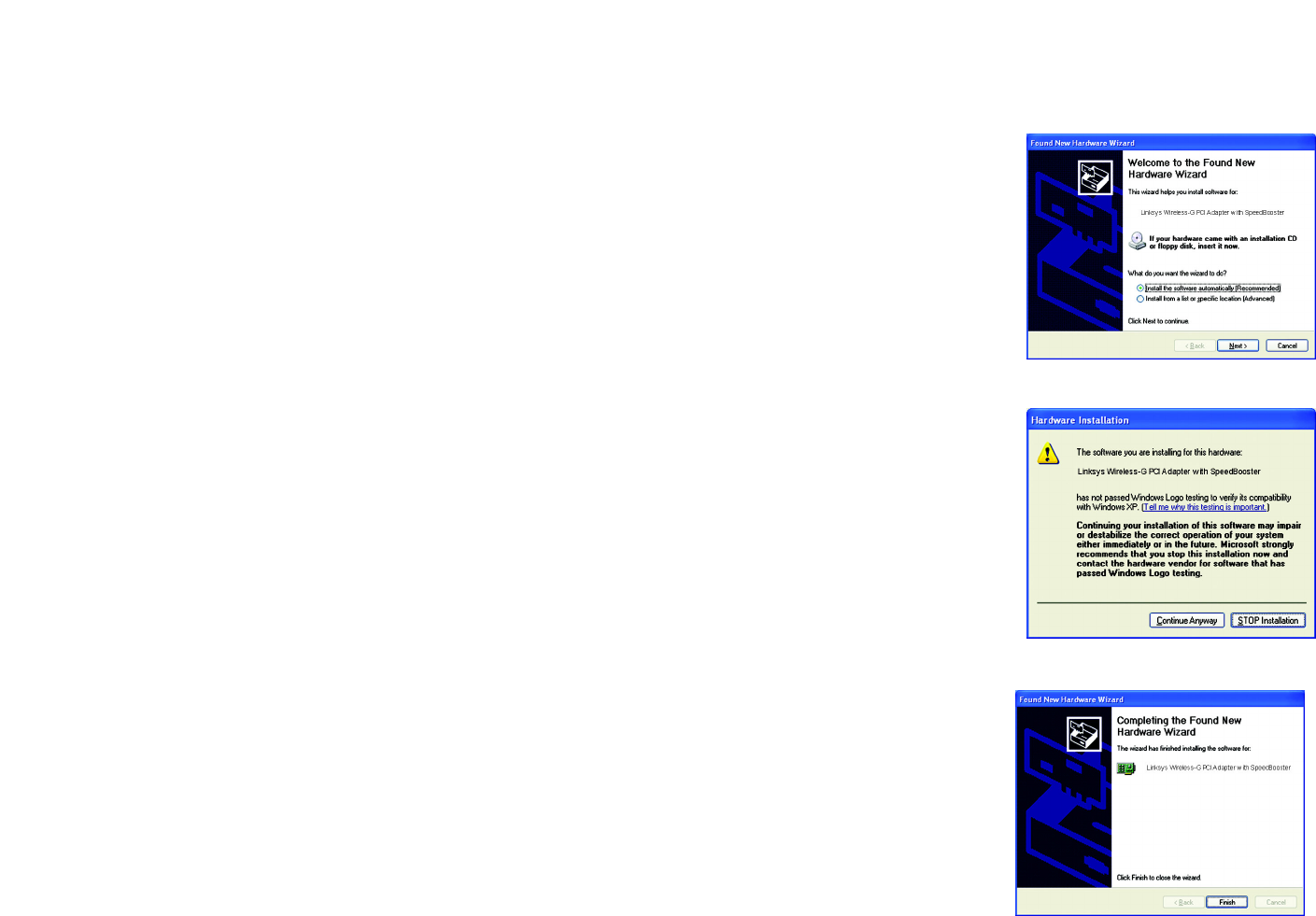 Windows XP will automatically detect the Adapter. Insert the Setup CD-ROM into the CD-ROM drive. Click the