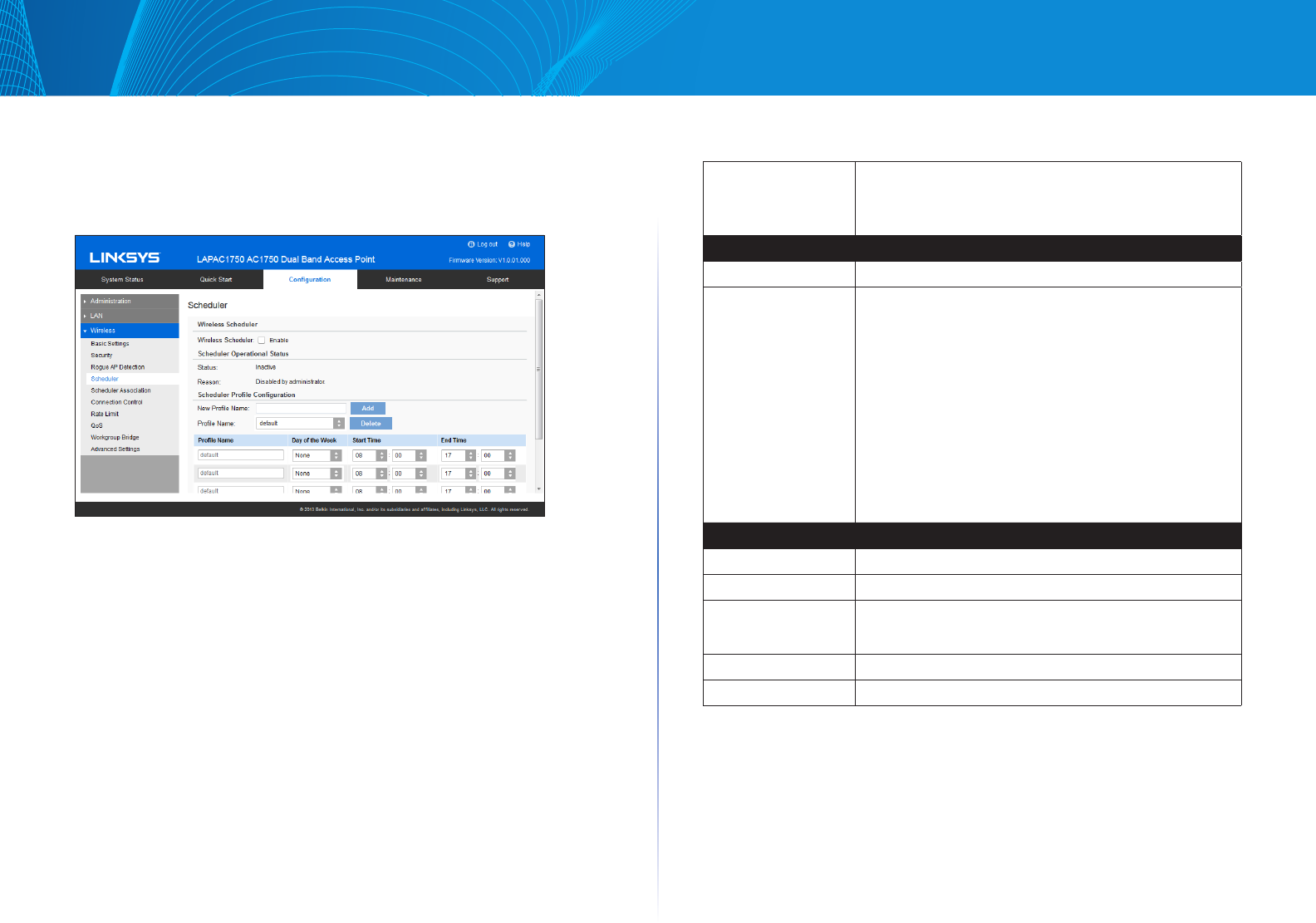 Wireless Scheduler Enable or disable wireless scheduler.
