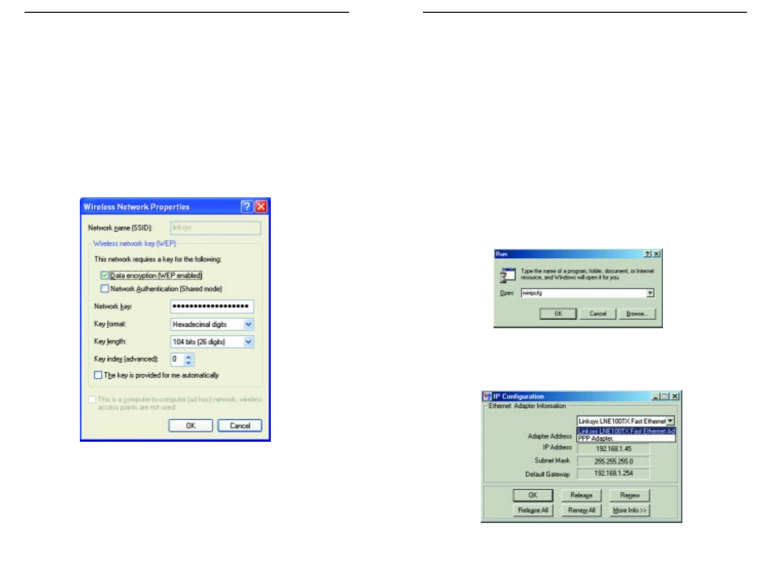 1. Click on Start and Run. In the Open field, enter winipcfg, as shown in