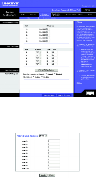 filter in the Start and End fields. Users connected to the Router will no longer be able to access any port number
