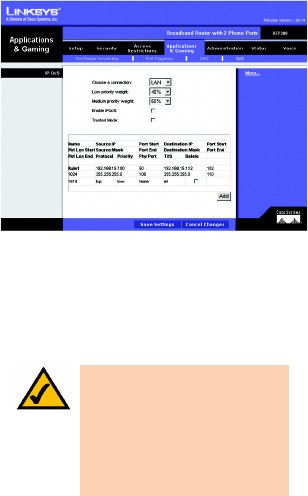 Enable IP QoS. Click this checkbox to enable IP QoS for the selected connection.