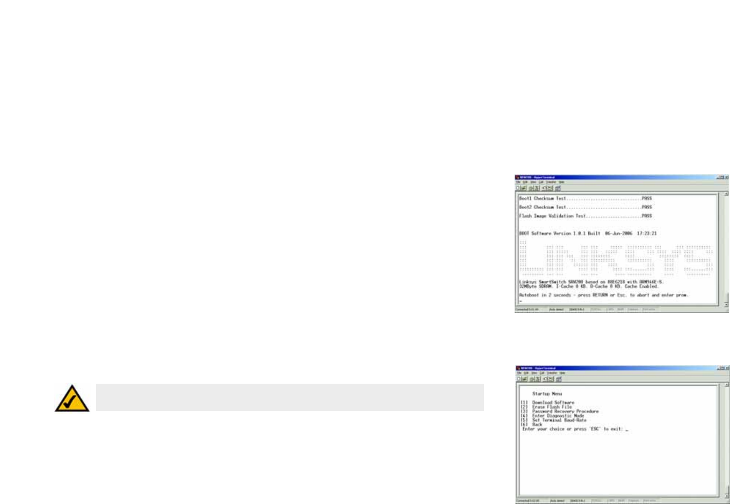 the console port. The Startup menu procedures can be done using the ASCII terminal or Windows HyperTerminal.