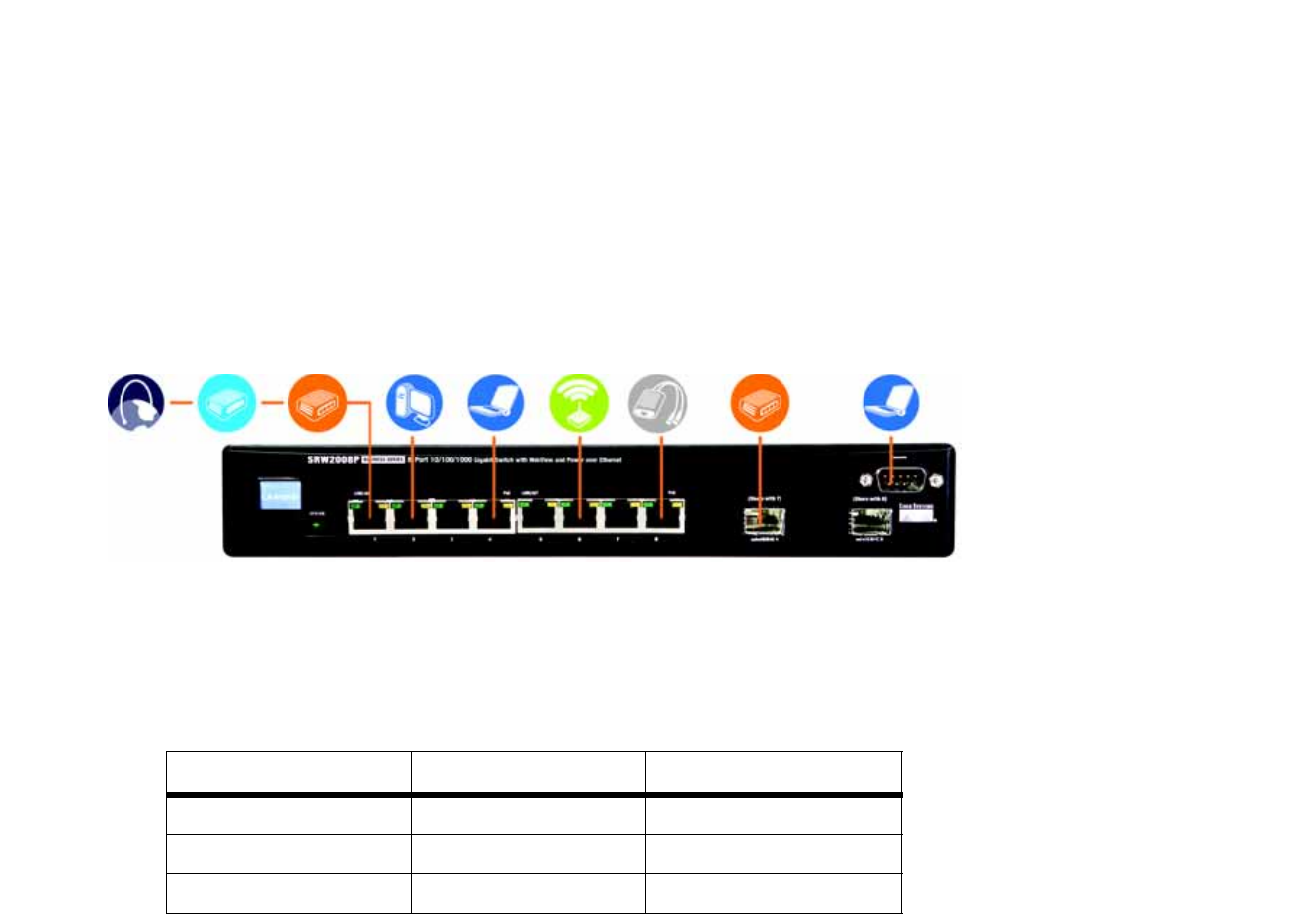 This chapter will explain how to connect network devices to the Switch. For an example of a typical network