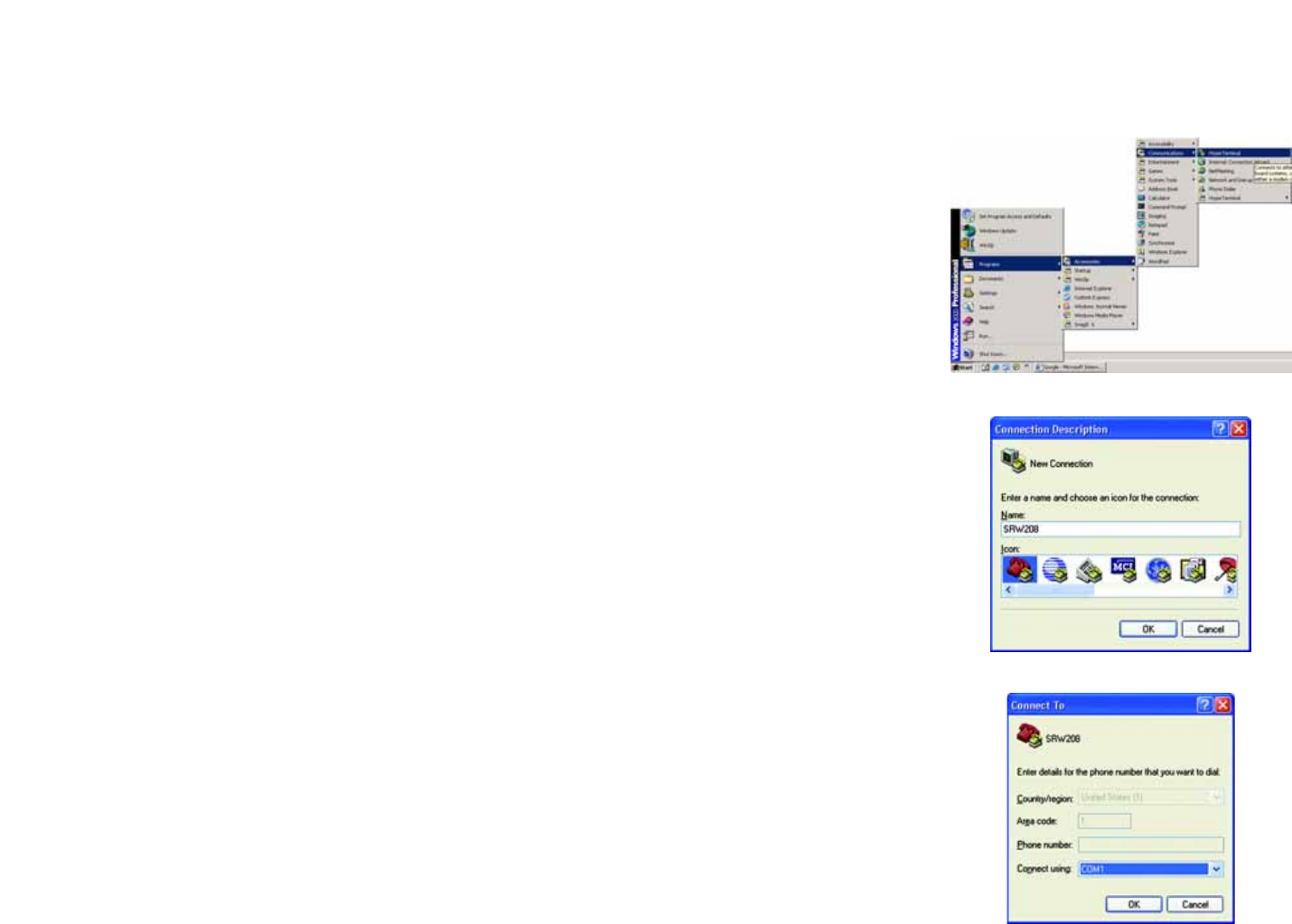 1. Click the Start button. Select Programs and choose Accessories. Select Communications. Select