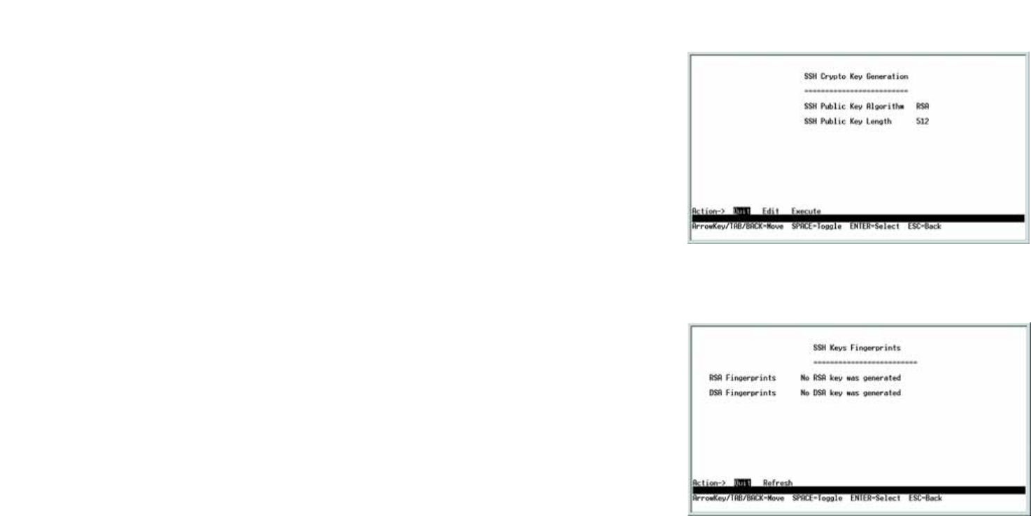On the SSH Keys Fingerprints screen, the RSA and DSA keys will be displayed if they have been generated.