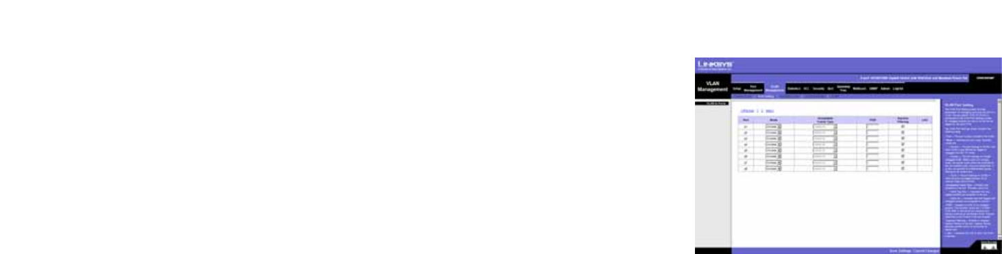 The VLAN Port Settings screen provides parameters for managing ports that are part of a VLAN. The port default