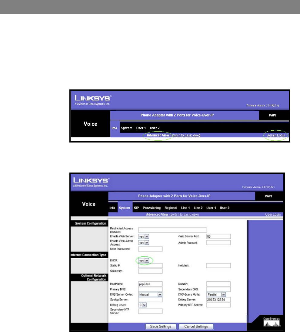 1. Connect to the PAP2 by entering the device’s IP address in the Web browser’s