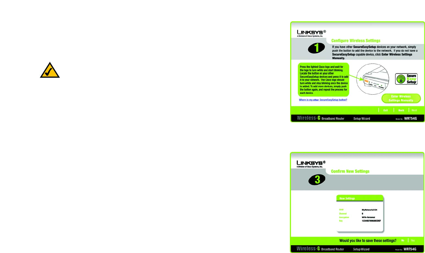the SecureEasySetup button on another device. The Router’s Cisco logo will stop flashing when the device