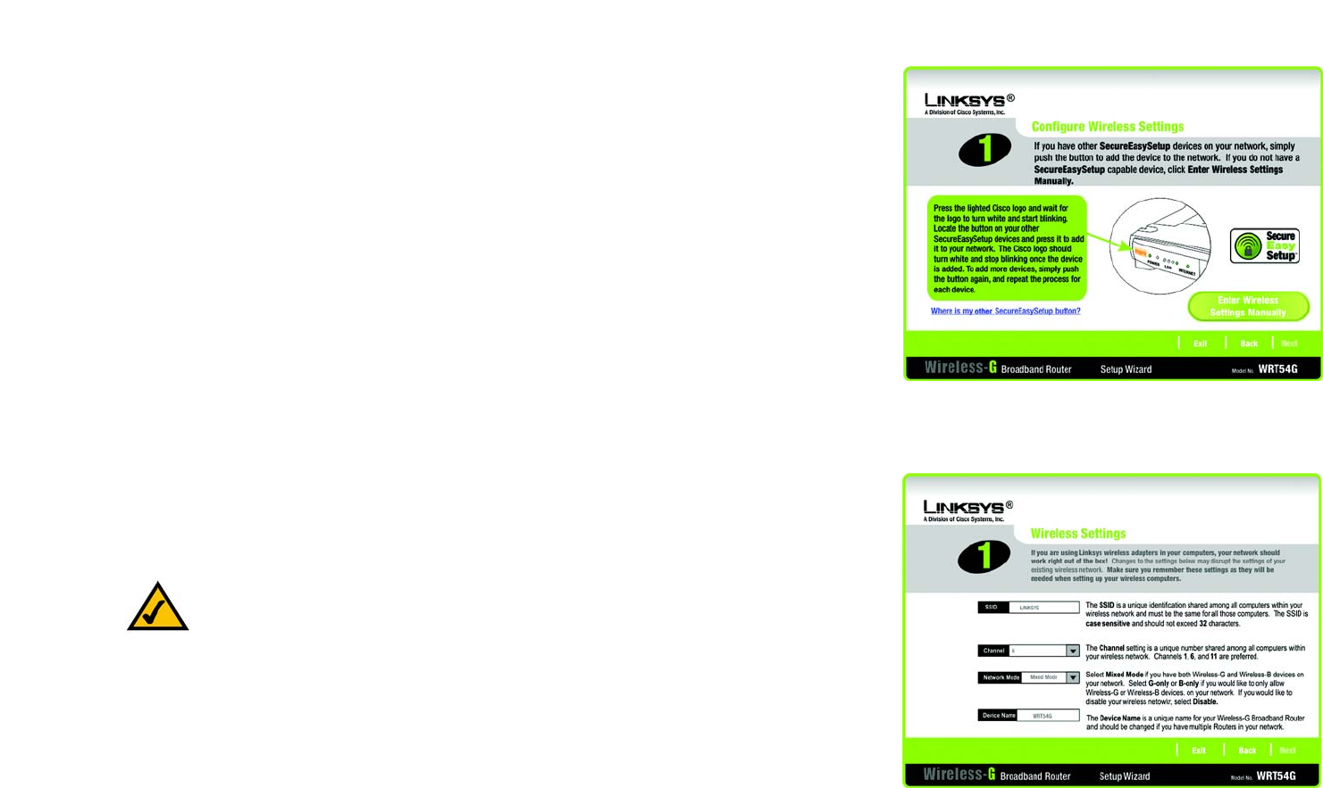 network. The default setting is linksys (all lowercase).