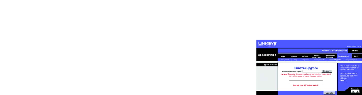 The Router's firmware is upgraded through the Web-based Utility's Administration tab. Follow these instructions: