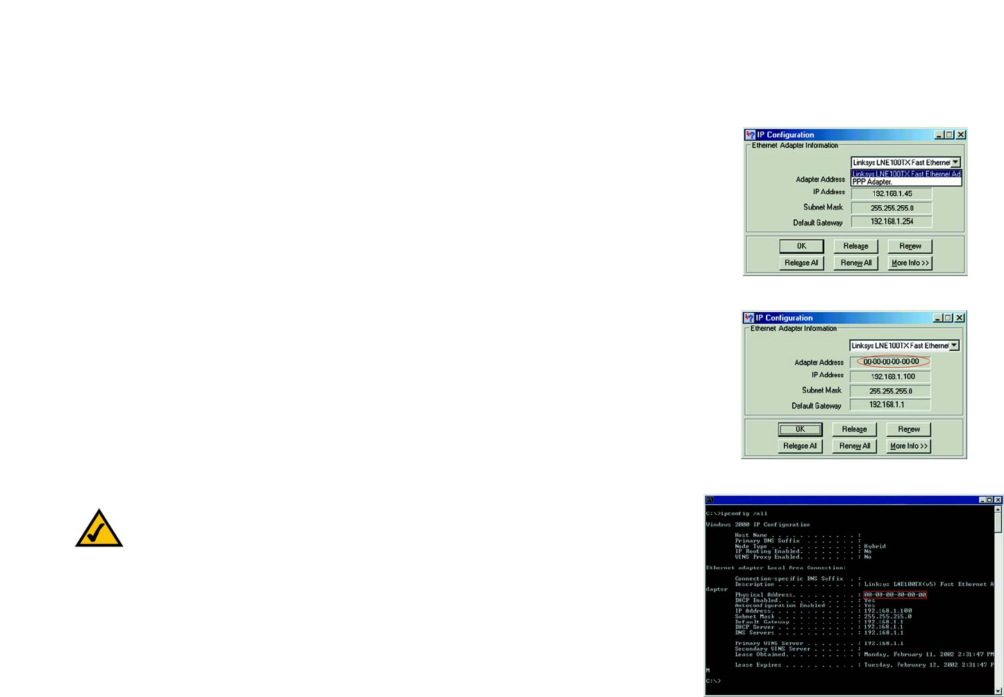 steps in this appendix to find the adapter’s MAC or IP address in Windows 98, Me, 2000, or XP.