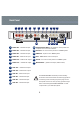 Back Panel RIGHT IN 4 3 RIGHT IN 3 WARNING RIGHT IN 2 THIS APPARATUS MUST BE EARTHED 4 5 6 7 RIGHT OUT BALANCED RIGHT IN 1 RIGHT OUT 8 LEFT OUT LEFT OUT 9 10 11 12 BALANCED LEFT IN 1 LEFT IN 2 LEFT IN 3 LEFT IN 4 RC5 OUT PUSH 2 SEE UNDERSIDE FOR SAFETY DETAILS RS232 IN RS232 OUT 13 RC5 IN PUSH 1 VOLTAGE RANGE 100-240V~50/60Hz FUSE TYPE: T800mA KNEKT IN MAINS INPUT RCU 14 15 16 17 18 1 RIGHT IN 4 – unbalanced input 13 2 RIGHT IN 3 – unbalanced input 14 RS232 OUTPUT/