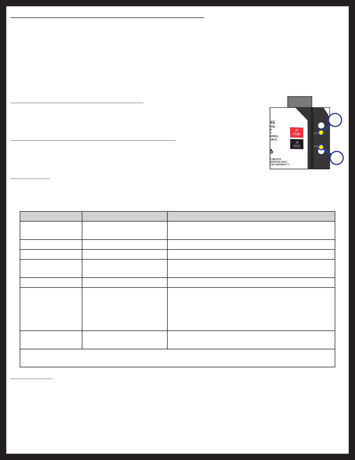During operation when an error occurs the board will use the LEDs to indicate where the problem exists.