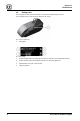 Sensor 01 Description, structure and function Fig. 6: Design of the sensor (rear view) 1 Background lighting 5 Power supply unit connection 2 Recessed grip 6 Inlet connecting fitting 3 Main switch 7 Outlet connecting fitting 4 RS485 interface 3.7 Functional and system description The sensor takes samples of the coolant from the coolant tank via the intake hose. Temperature and concentration of the samples are determined before the samples are returned to the tank via the outlet hose.