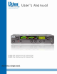 LT-800 Quick Reference LT-800 Front Panel: Controls & Displays Quick Reference Package Contents Specifications Package Contents Quick Reference Adjust audio input levels of Input 1 and Input 2 here. See page 11 for more information. Indicates Process Mode is active. Indicates audio input Indicates level of Input 1 and Shows Super Quiet Input 2. mode is active. mixed audio level. Top mount antenna connection: Remove rubber plug and screw antenna in place. LCD: Shows which channel is selected.