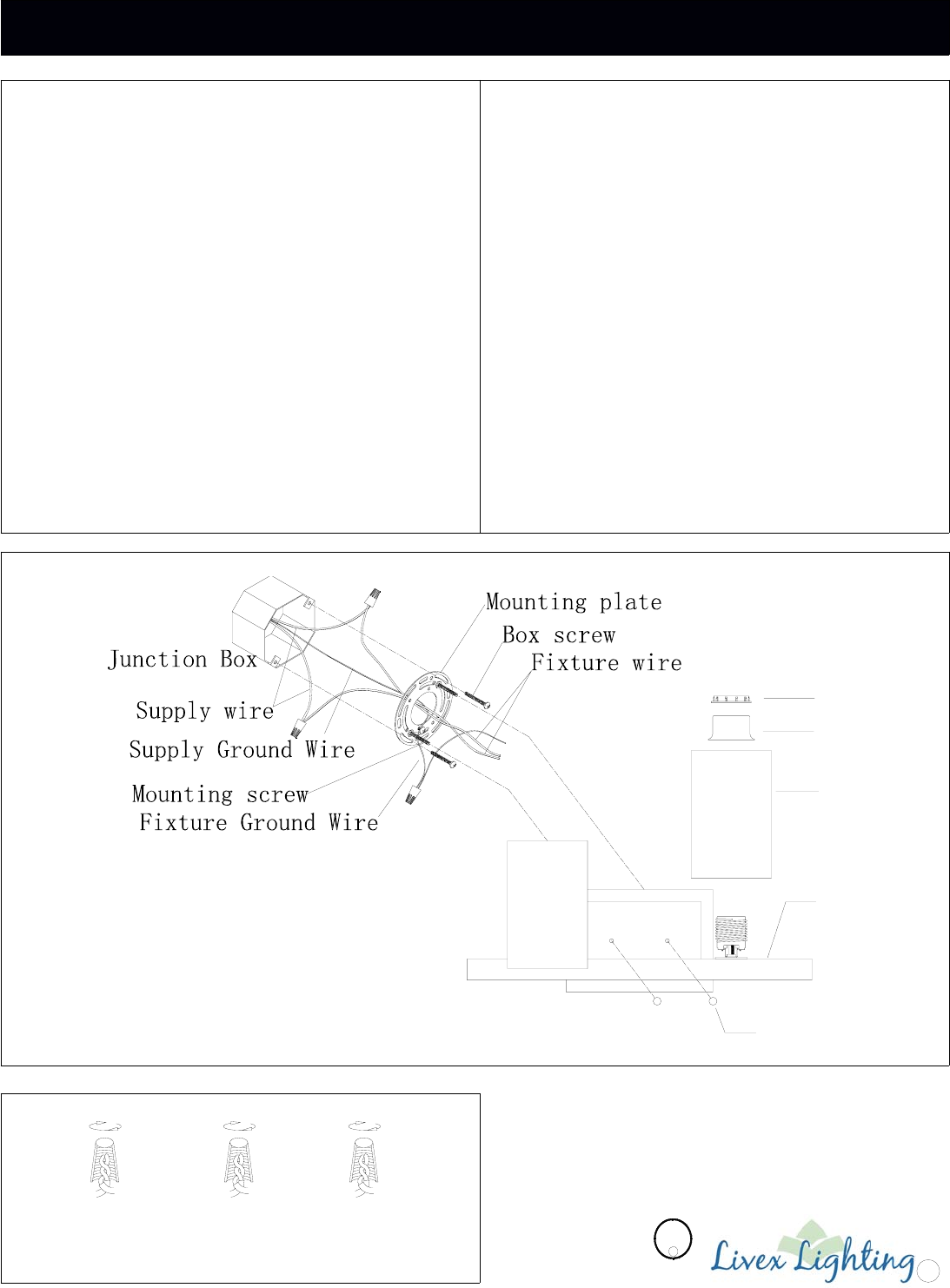 6. Attach the glass shade (C) and collar ring(B) to the lamp