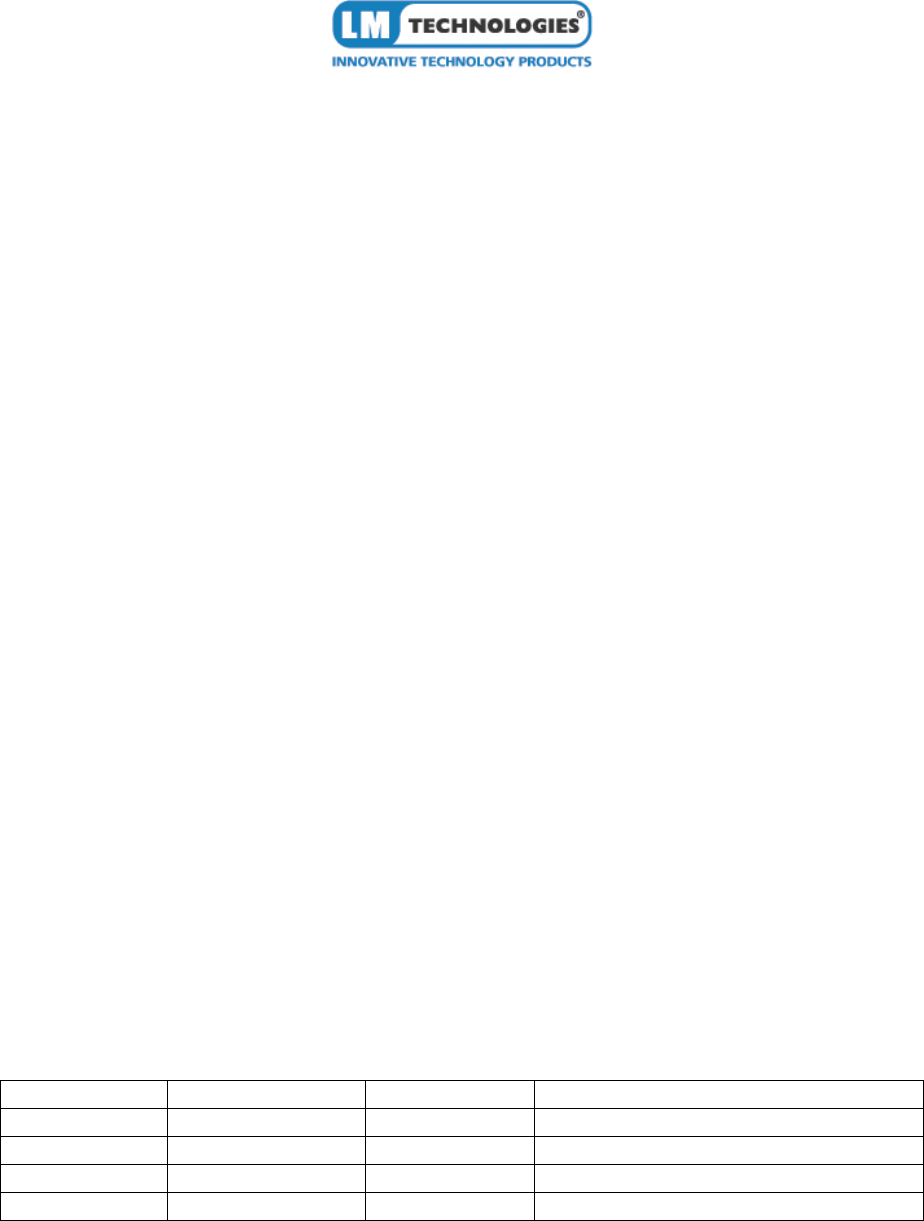 LM Technologies Ltd. AT Command Manual Applicable for Firmware version 4.5X, 4.6X, 6.5X, 6.1X Revision v1.0 v1.1 v1.2 v1.3 Date 21-07-2009 24-09-2009 15-06-2010 22-03-2011 Name Kanwal Kanwal Kanwal Sumeet Description Initial Draft version New AT command added Applicable to firmware v4.53, v4.61 Updates for firmware v6.