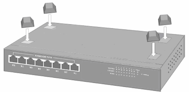 Figure 2-4. Attaching Rubber Feet to each corner on the bottom of the Switch