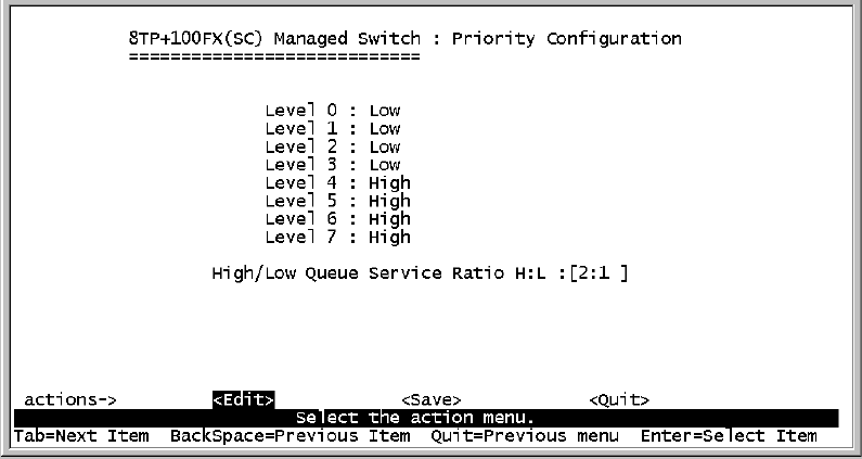 n Ratio: Select the preference given to packets in the switch's high-priority