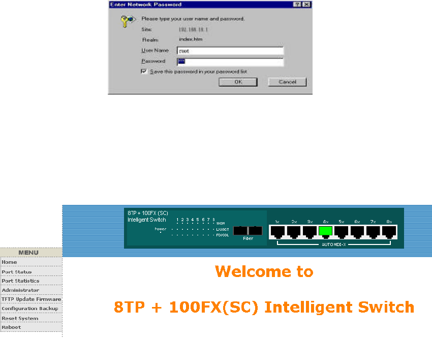 Speed status: Display 100Mbps or 10Mbps speed, Port 1- 8 is