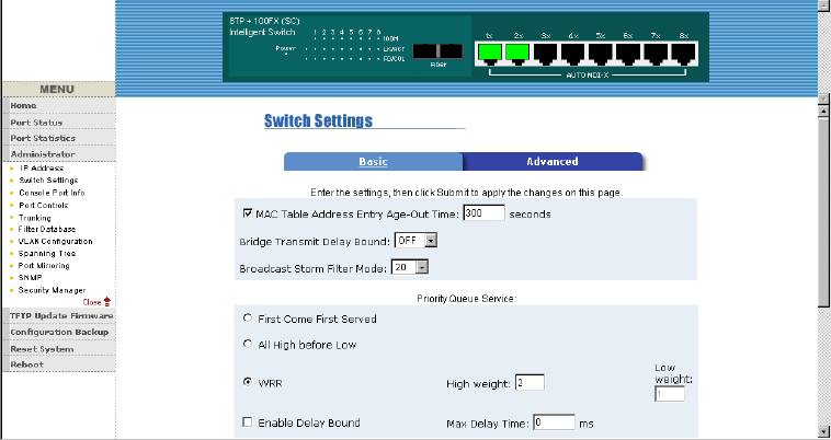 the switch sends 2 high priority packets before sending 1 low priority