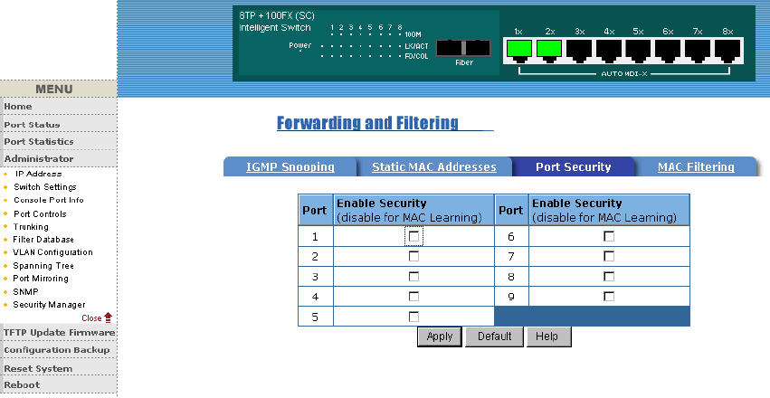 3. Click Static MAC Addresses. In the MAC address box, enter the MAC