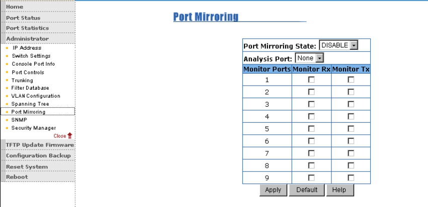 copied to mirror port. You can select max 9 monitor ports in the switch. If