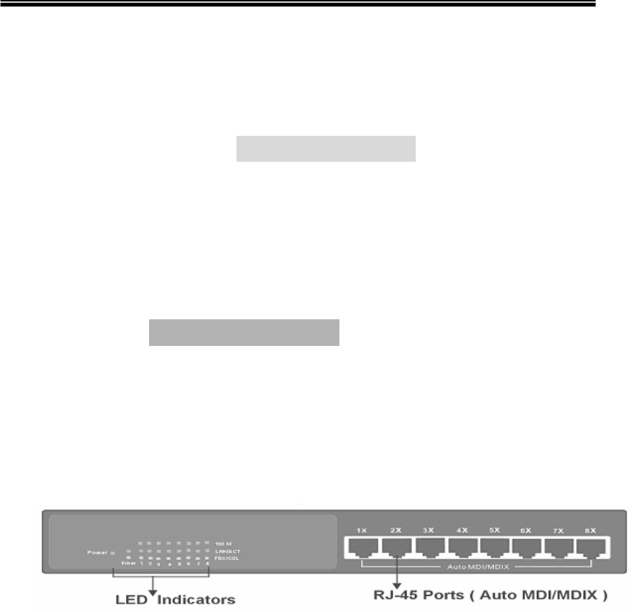 n RJ-45 Ports (Auto MDI/MDIX): 8x 10/100 auto- sensing for 10Base-T or