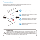 Preparation Remove existing door hardware, latch or deadbolts before installing the new lock. Use provided template to bore new holes if needed. 1-3/8" ~ 2" (35mm ~ 50mm) * 1/2" 12mm * 1" 4-1/8" 105mm 25mm 1 Measure and confirm your door is between 1-3/8" ~ 2" (35mm - 50mm). 2 Measure and confirm the hole in the door door is 2-1/8" (54mm). 3 Measure and confirm that the backset is between 2-3/8" (60mm) to 2-3/4" (70mm). 4 Measure and confirm that hole in the door edge is 1" (25mm).