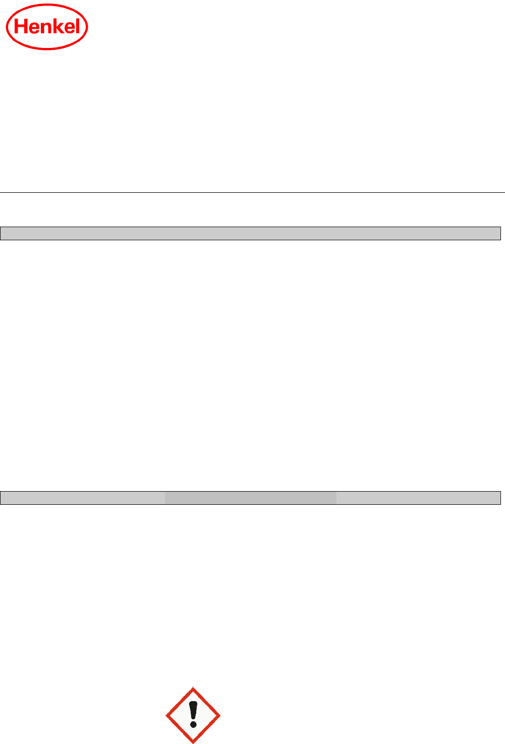 SDB-Nr.: 173035 V005.2 LOCTITE 241 Seite 3 von 15 Inhaltsstoffangabe gemäß CLP (EG) Nr 1272/2008: Gefährliche Inhaltsstoffe CAS-Nr. α, α-Dimethylbenzylhydroperoxid 80-15-9 EG-Nummer REACH-Reg. No. 201-254-7 01-2119475796-19 Gehalt N,N-Diethyl-p-toluidin 613-48-9 210-345-0 1- < 3 % N,N-Dimethyl-o-toluidin 609-72-3 210-199-8 0,1- < 0,25 % Methylmethacrylat 80-62-6 201-297-1 01-2119452498-28 0,1- < 1 % 1- < 3 % Einstufung Acute Tox. 4; Dermal H312 STOT RE 2 H373 Acute Tox. 4; Oral H302 Org.