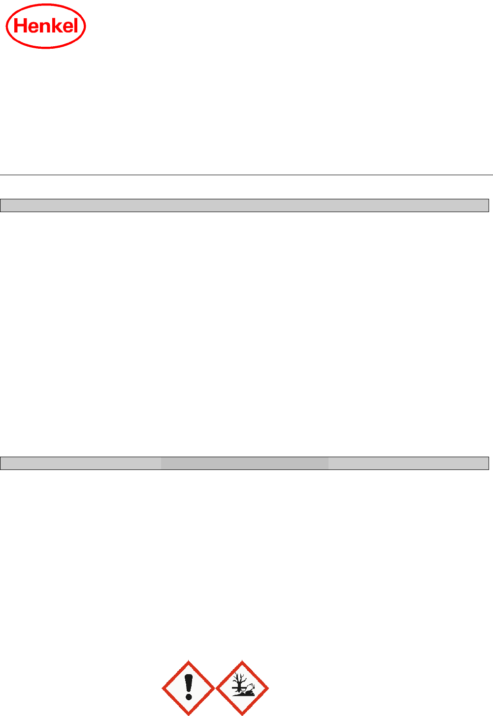 SDB-Nr.: 178352 V001.0 LOCTITE 9483 2K EPOXY 50 ML Seite 16 von 16 ABSCHNITT 15: Rechtsvorschriften 15.1. Vorschriften zu Sicherheit, Gesundheits- und Umweltschutz/spezifische Rechtsvorschriften für den Stoff oder das Gemisch VOC-Gehalt < 3,00 % (2010/75/EC) 15.2. Stoffsicherheitsbeurteilung Eine Stoffsicherheitsbeurteilung wurde nicht durchgeführt. Nationale Vorschriften/Hinweise (Deutschland): WGK: WGK = 2, deutlich wassergefährdendes Gemisch.