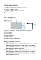 2.3 Package Contents 1 x Bluetooth Audio Transmitter & Receiver 1 x USB Charging Cable 1 x 3.5mm Male to Male Audio Cable 1 x User manual 3.0 Installation 3.1 Overview 1. Multi-function button (MFB): Switching on/off, pairing 2. Charging jack 3. LED indicator 4. 3.5mm audio jack 5. TX/RX switch 6. 3.5mm to 3.5mm audio cable 3.2 System Requirements a) When BT0024 is used as a Bluetooth transmitter, you need to prepare an audio player with 3.