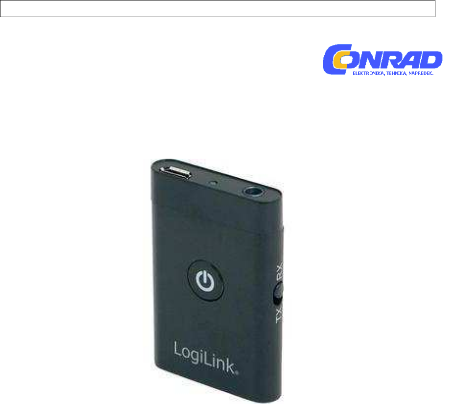 SLO - NAVODILA ZA UPORABO IN MONTAŽO Kat. št.: 55 74 79 www.conrad.si NAVODILA ZA UPORABO Avdio vmesnik s funkcijo Bluetooth LogiLink BT0024 Kataloška št.