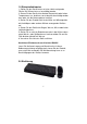 2.6 Packungsinhalt • 1 x ID0029 2.4GHz kabellose Tastatur + Maus Combo Set • 1 x Maus Ladestation • 2 x AAA 600mAh Ni-MH Baterien • 2 x AAA Alkaline Batterien • 1 x Bedienungsanleitung 3.0 Inbetriebnahme & Anwendung 3.1 Power Save Funktion Die Maus der ID0029 ist mit einer Power Save Funktion ausgestattet. Wenn Sie mit der Maus unterwegs sind, wird die LED der Maus automatisch ausgeschaltet um Energie zu sparen. Die Maus muss dazu jedoch von der Ladestation getrennt sein. Nutzen Sie die Maus für ca.