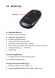 2.0 Einführung 2.1 Spezifikationen Komfort Gummioberfläche Anschluss über USB Port Präziser, optischer Sensor Zoom In und Zoom Out Funktion Einstellbare Sensitivität: 800 - 1600dpi Wechsel der Sensitivität durch CPI Button auf der Oberseite 3 Standard Buttons + 1 CPI Button Plug & Play 2.2 Packungsinhalt 1 x Optische Maus mit Einstellbaren DPI 1 x Bedienungsanleitung 2.3 Systemvoraussetzungen Ein freier USB Port (mind. USB 1.