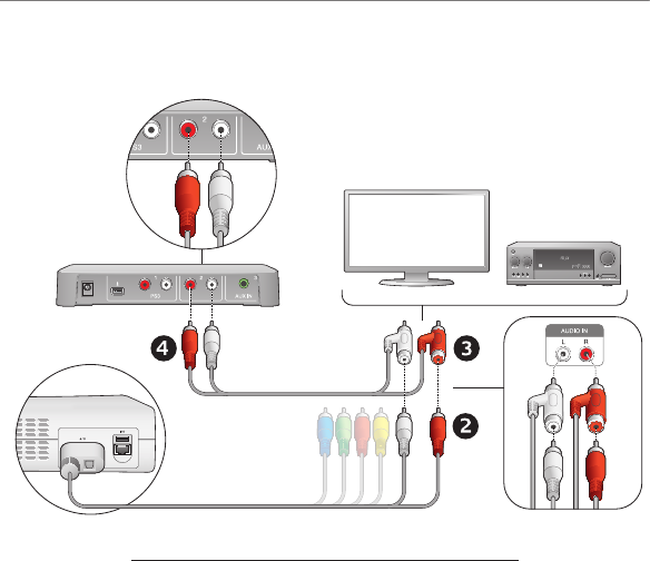 On the other end of the Logitech RCA-to-RCA passthrough cable, plug the red and 4.