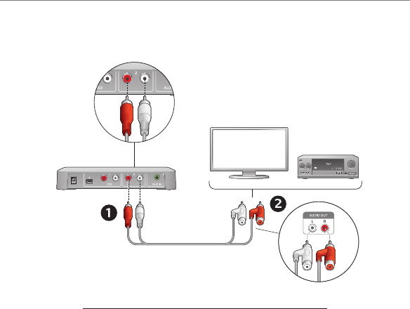 Connect the other end of the cable to the red and white stereo audio-out ports on 2.