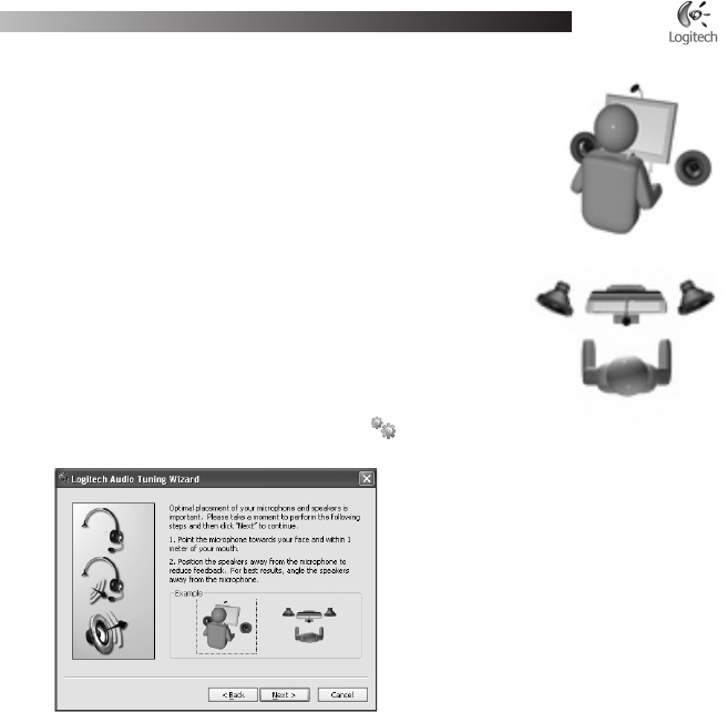 eteenpäin mikrofonin ja kaiutinten asennusohjelma ja ohjattu äänensäätötoiminto.