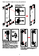 Preinstalled the entire frame into the shower room. 0, Lack the fixed panel @x1 N into the wall jambs ®x2. (Pay attention to the side with the red label facing Inward) Lock the guide rail fixings ® x2 and ST4x12 matrix screws @x2, adjust the level. Then put the entire frame Into the shower room according to the holes in step 1, then tighten tha decorative cover @x6 and $T4x30 metric screws @x6. [ A Install the round pipe single-head handle ®x1.