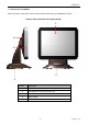 COBRA15 1.2 A Visual tour of COBRA15 Before you start, please take a few moments to become familiar with COBRA15 Terminal. Elegant, Solid, Fashionable and Compact Design 1 2 3 5 4 Item No Description 1 Touch screen 2 Removable Hard drive Extraction slot 3 POWER LED 4 Base / Stand 5 Optional devices 8 Version: 1.