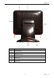 COBRA15 7 6 8 10 9 9 11 Item No 12 Description 6 Function cover 7 Optional VFD ,7” and 10” Secondary Display cover 8 MSR & RFID cover 9 Speaker holes (speaker Optional) 10 Switch cover 11 VESA hole cover for 15”Secondary Display 12 Cable cover 9 Version: 1.