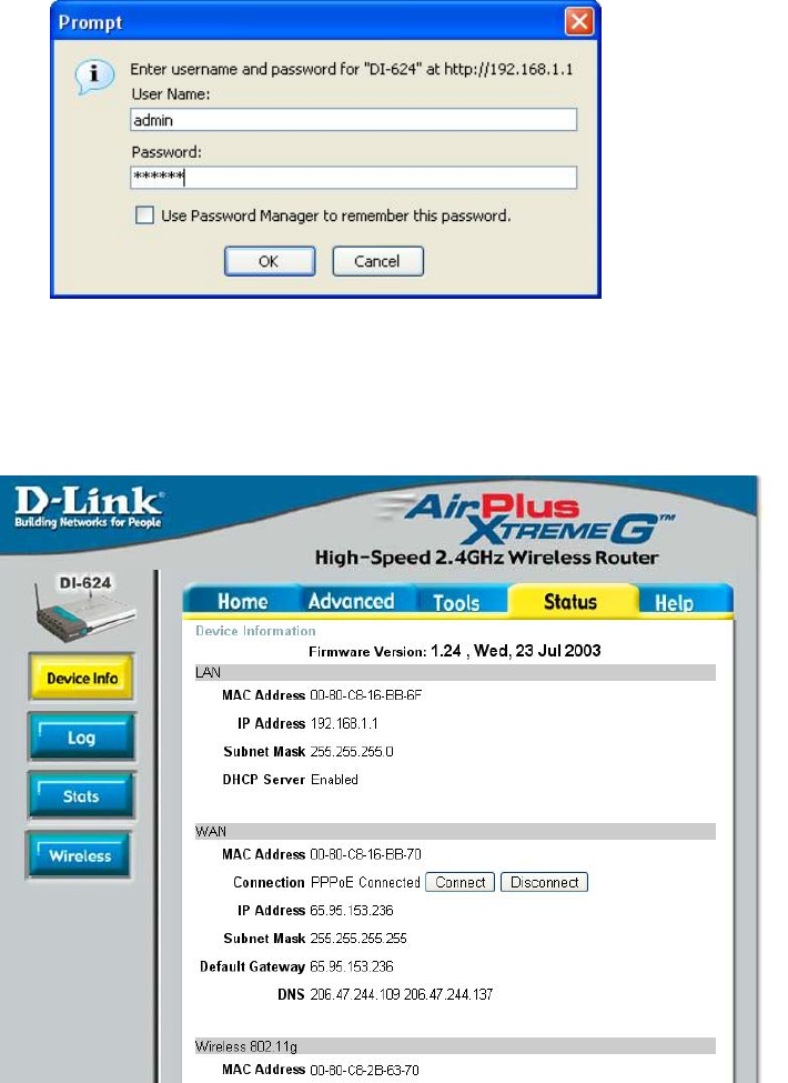 Select a screen display that provides device and/or network status. In the case of the DLink-624 it will appear as