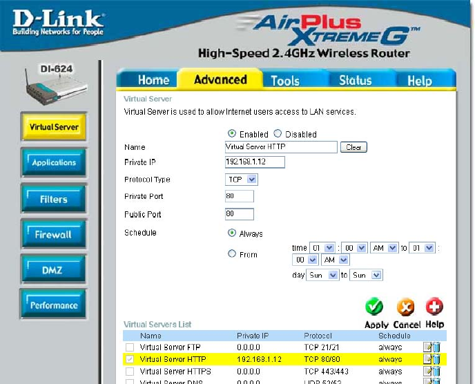 Note to advanced users; Web servers are favourite targets of hackers and so using port '80' in this last step may