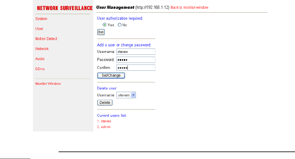Enter in a user name and password to create a new user and click on 'Set/change'. Also, click on the 'admin'
