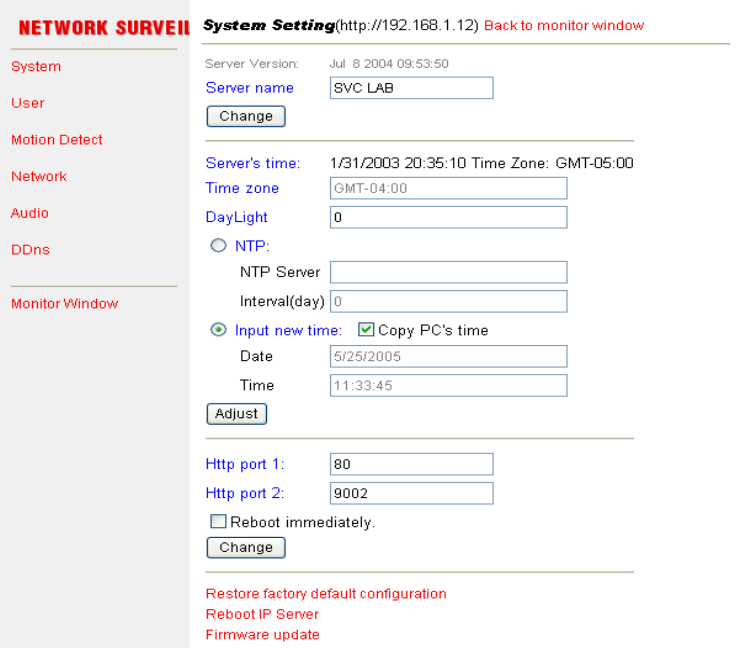 To set an additional port for accessing the Lorex Monitor, click on the 'System' link. The following screen will