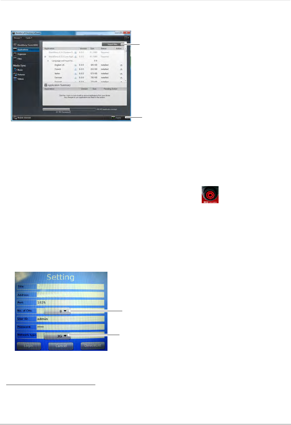 1 Locate the app in your BlackBerry and open Lorex Mobile Eco ( ).
