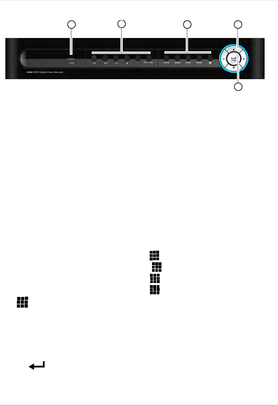 • In Live Viewing Mode, press to stop DVR recording. Password required; does not override
